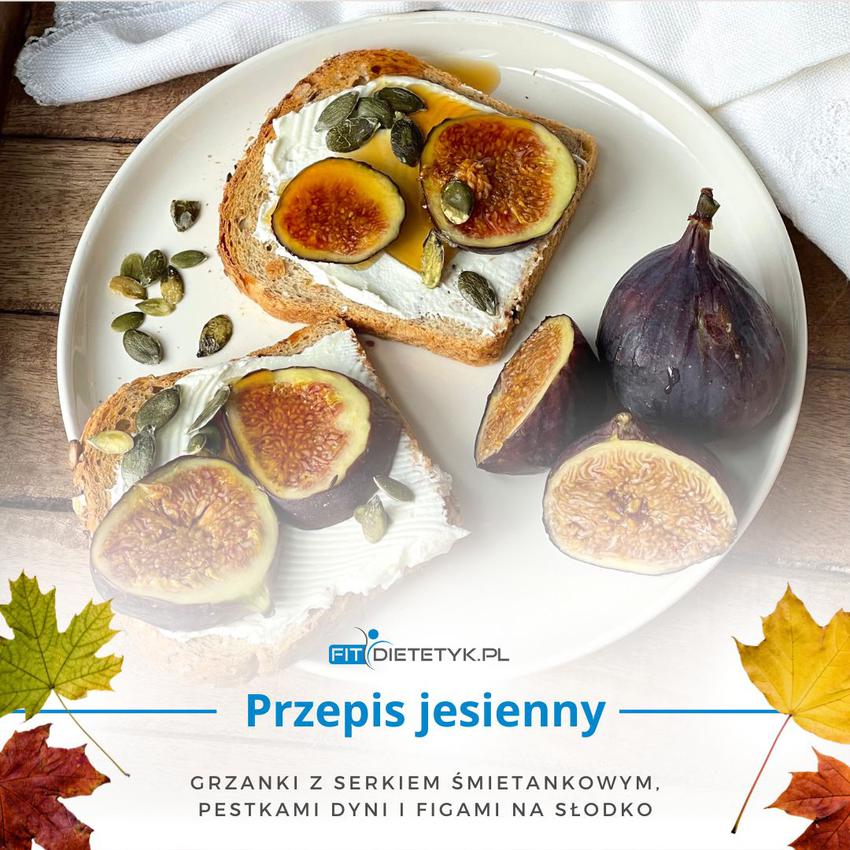 Kromki chleba opiecz na grzanki, a następnie posmaruj je serkiem śmietankowym. Figi umyj, pokrój w plastry i ułóż na pieczywie. Całość skrop miodem lub syropem klonowym i posyp pestkami dyni. Podawaj od razu – najlepiej do porannej kawy ☕💛
