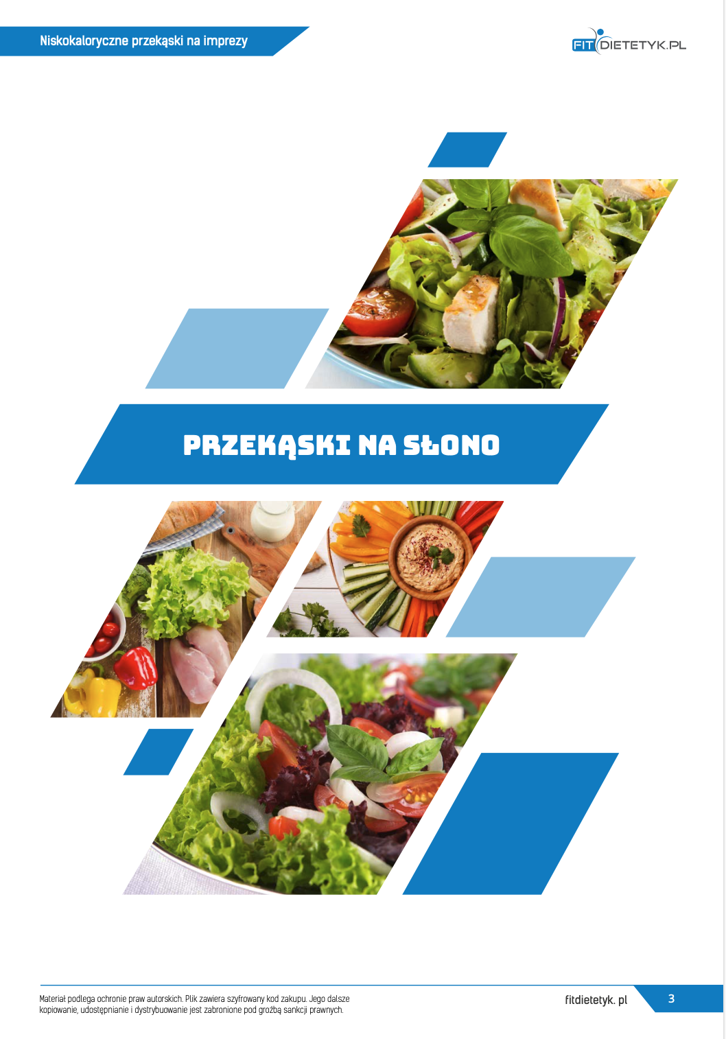 Brakuje Ci pomysłu na pyszne a zarazem dietetyczne przekąski? W tym e-booku znajdziesz ponad 30 różnych przekąsek przygotowanych na różne imprezy okolicznościowe. Przygotowano tutaj zarówno przekąski na słono jak również na słodko. Zaskocz swoich znajomych lub rodzinę i pokaż, że przekąska może być nie tylko smaczna ale także niskokaloryczna i zdrowa.