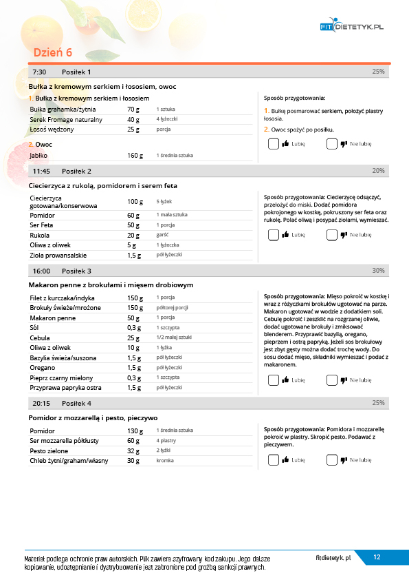 w formie propozycji posiłków (zamiast pojedynczych jadłospisów jednodniowych, przygotowano propozycje kilku propozycji dań na każdy posiłek). Tutaj nie uzależniamy Cię od tego jakie masz np. w danym dniu zjeść śniadanie czy obiad, tylko sam wybierasz sobie ulubione danie z kilku przedstawionych przez nas propozycji.